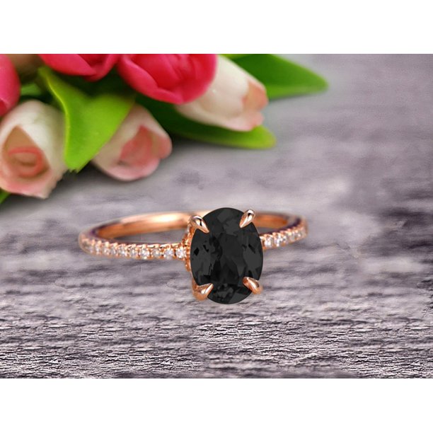 Vintage Looking Black Diamond Moissanite Engagement Ring On 10k Rose Gold 1 75 Carat 8x6mm Oval Cut Gemstone Custom Made Fine Jewelry Art Deco Anniversary Ring Bridal Ring Walmart Com
